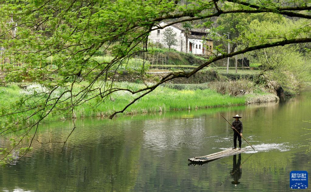 “小小竹排江中游,巍巍青山兩岸走?!鄙鲜兰o七十年代,電影《閃閃的紅星》中潘冬子劃竹排的場(chǎng)景堪稱(chēng)經(jīng)典,而取景地便是古徽州“一府六縣”之一的江西省婺源縣。婺源全縣面積近3000平方公里,境內水域狹長(cháng)、水網(wǎng)密布,這里“八分半山一分田,半分水路和莊園”。水面上常有當地人手持撐篙,左右翻飛,劃出道道弧線(xiàn),激起朵朵浪花。人立排上,排浮水面,悠悠前行,行云流水。