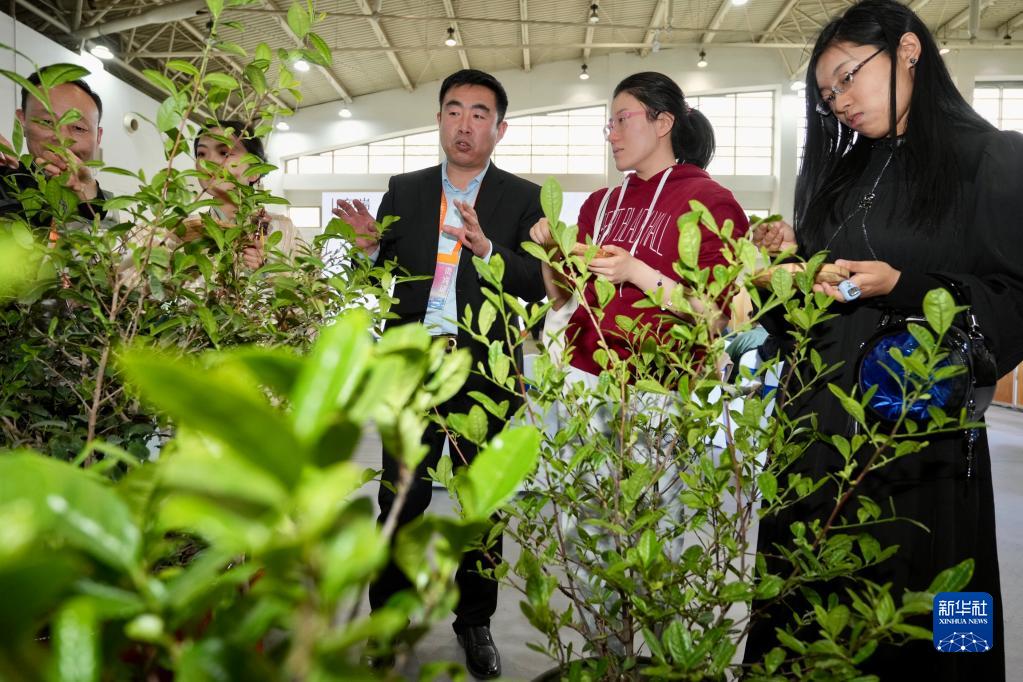 4月21日,在北京茶博會(huì )“春茶臨京城 共品非遺茶”活動(dòng)上,觀(guān)眾聽(tīng)工作人員介紹茶葉。