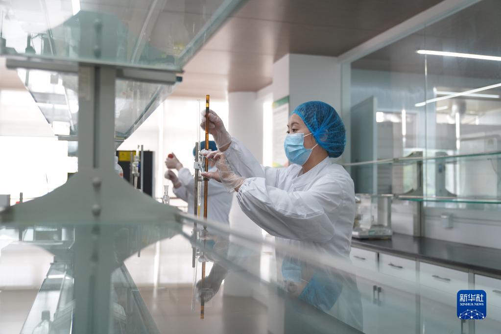4月21日,在北碚天潤園區共享食品檢驗室,檢驗人員對送檢的食品進(jìn)行檢測。