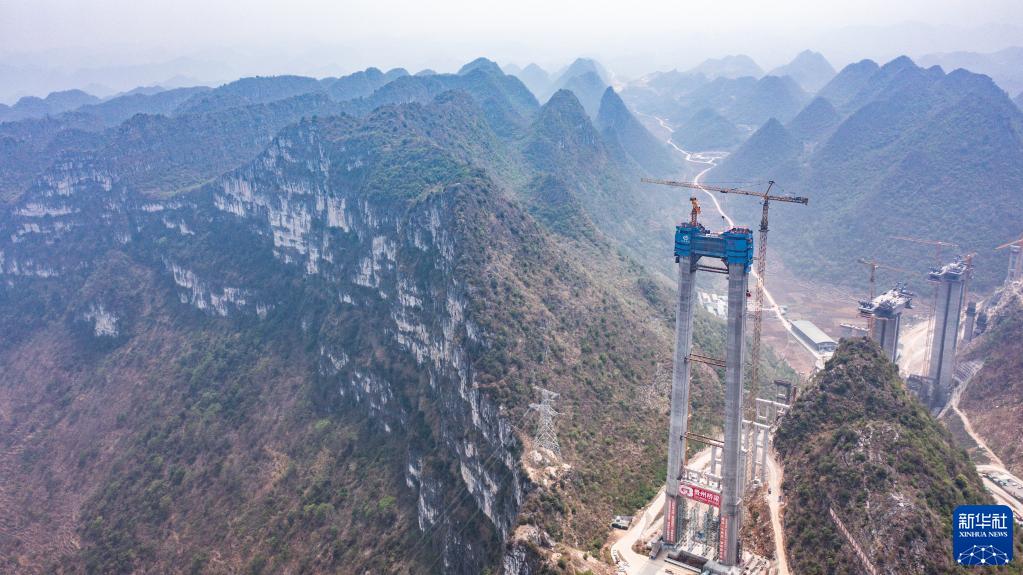 4月21日,六安高速花江峽谷大橋6號主塔順利實(shí)現封頂(無(wú)人機照片)。