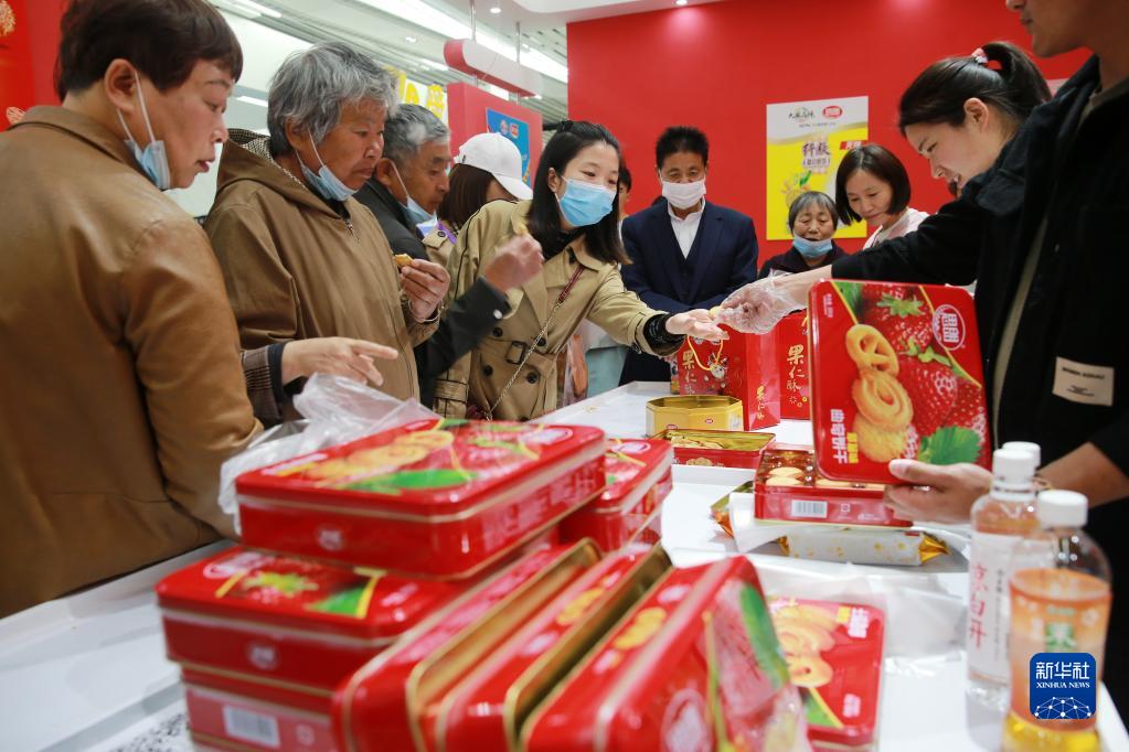 4月21日,在淮北市相山經(jīng)濟開(kāi)發(fā)區食品博覽園會(huì )展中心,觀(guān)眾在食品工業(yè)博覽會(huì )上品嘗食品。