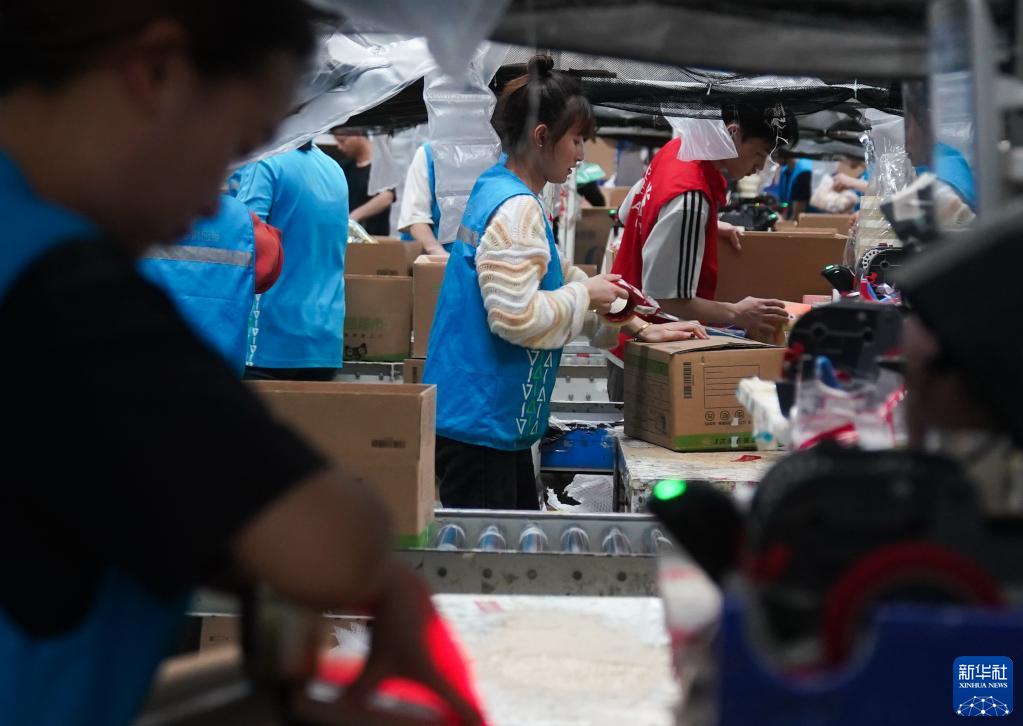 4月21日,員工在位于南京空港經(jīng)濟開(kāi)發(fā)區(江寧)一家企業(yè)的商超倉內忙碌。