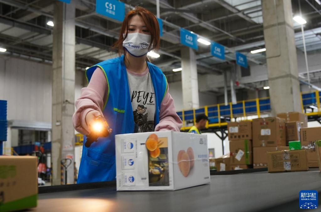 4月21日,員工在位于南京空港經(jīng)濟開(kāi)發(fā)區(江寧)一家企業(yè)的商超倉內忙碌。
