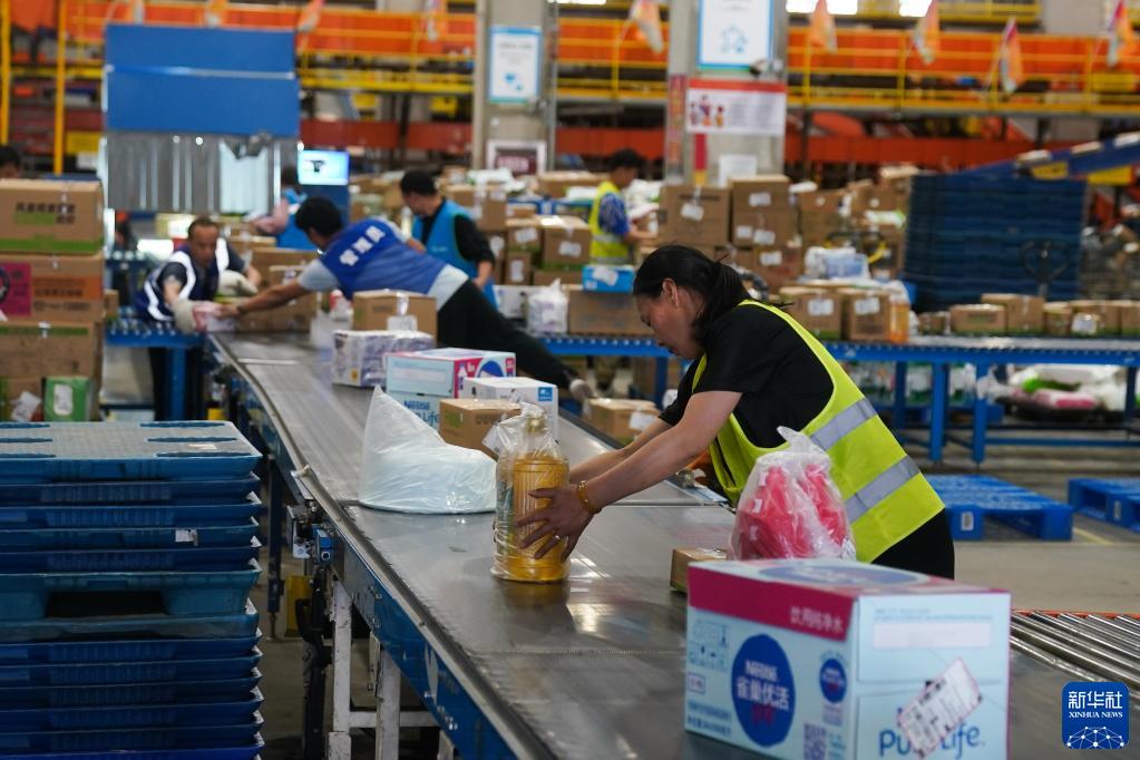4月21日,員工在位于南京空港經(jīng)濟開(kāi)發(fā)區(江寧)一家企業(yè)的商超倉內忙碌。