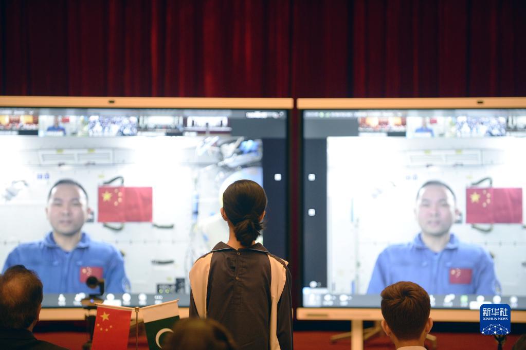 4月20日,巴基斯坦青少年在位于伊斯蘭堡的中國駐巴基斯坦大使館參加天宮對話(huà)——神舟十五號航天員乘組與上海合作組織國家青少年問(wèn)答活動(dòng)時(shí)向中國航天員提問(wèn)。