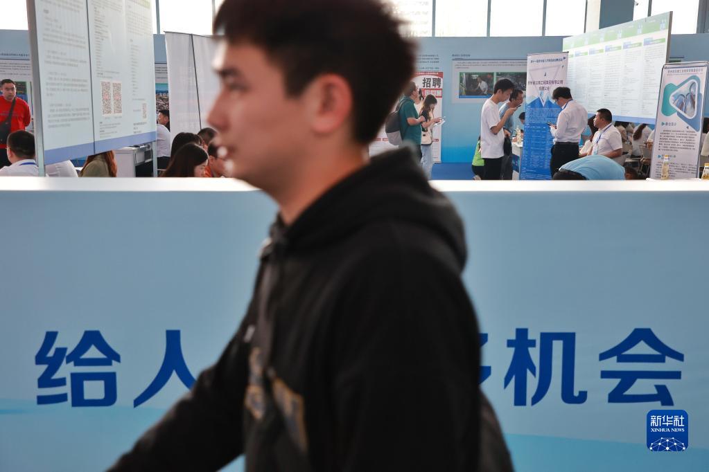 4月22日,應聘者經(jīng)過(guò)人博會(huì )現場(chǎng)的標語(yǔ)。