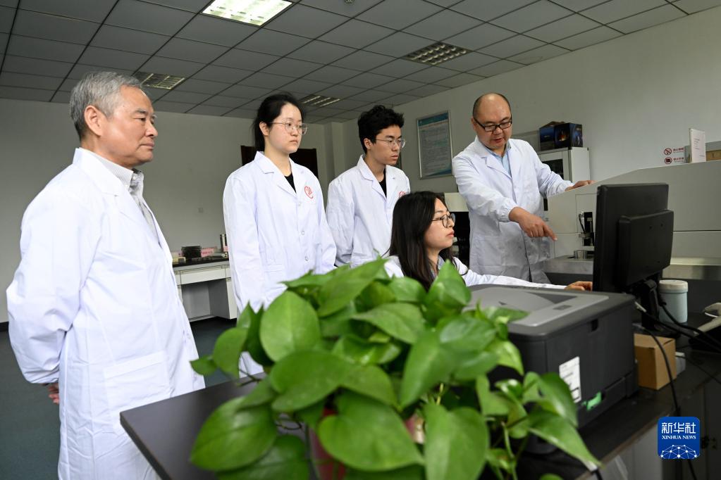 4月19日,在中科院合肥物質(zhì)科學(xué)研究院,固體物理研究所特種航天金屬材料研究團隊研究員韓福生(左一)和副研究員王幸福(右一)在指導學(xué)生使用直讀光譜儀。
