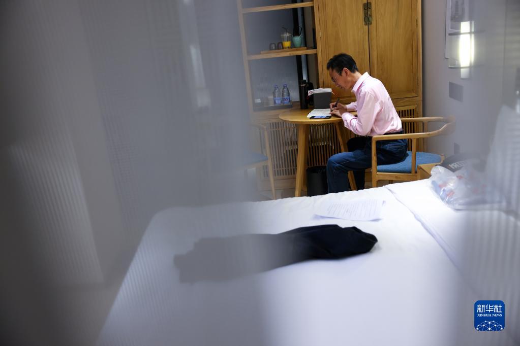 4月11日,朱彥軍在北京一家賓館抄錄詩(shī)詞,他依然保持著(zhù)隨手抄錄詩(shī)詞的習慣。他說(shuō),以前收入有限,一有空就到新華書(shū)店“抄書(shū)”?!艾F在有了手機,方便多了?!毙氯A社記者 劉金海 攝