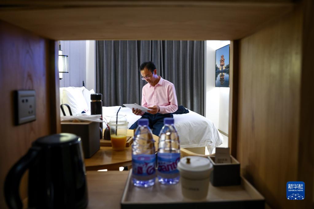 4月11日,朱彥軍在北京一家賓館瀏覽參加節目錄制的受訪(fǎng)提綱。第二天,他將受邀參加中國教育電視臺《育見(jiàn)》欄目關(guān)于“世界讀書(shū)日”系列訪(fǎng)談的錄制。新華社記者 劉金海 攝