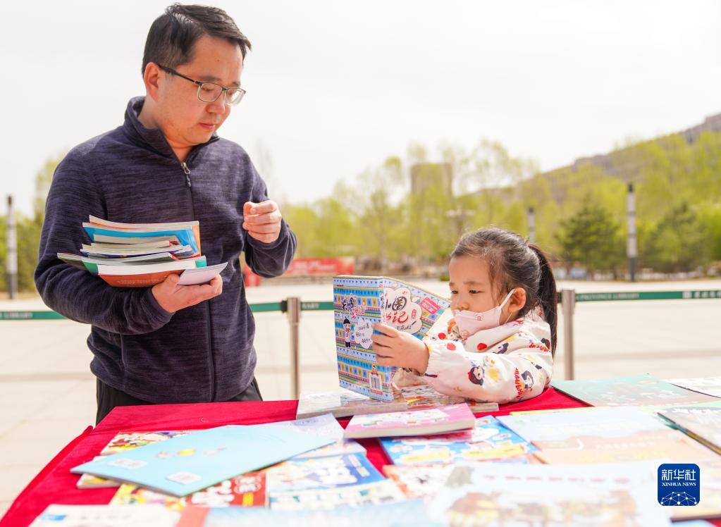 4月22日,市民在吉林省圖書(shū)館前的“換書(shū)大集”挑選圖書(shū)。