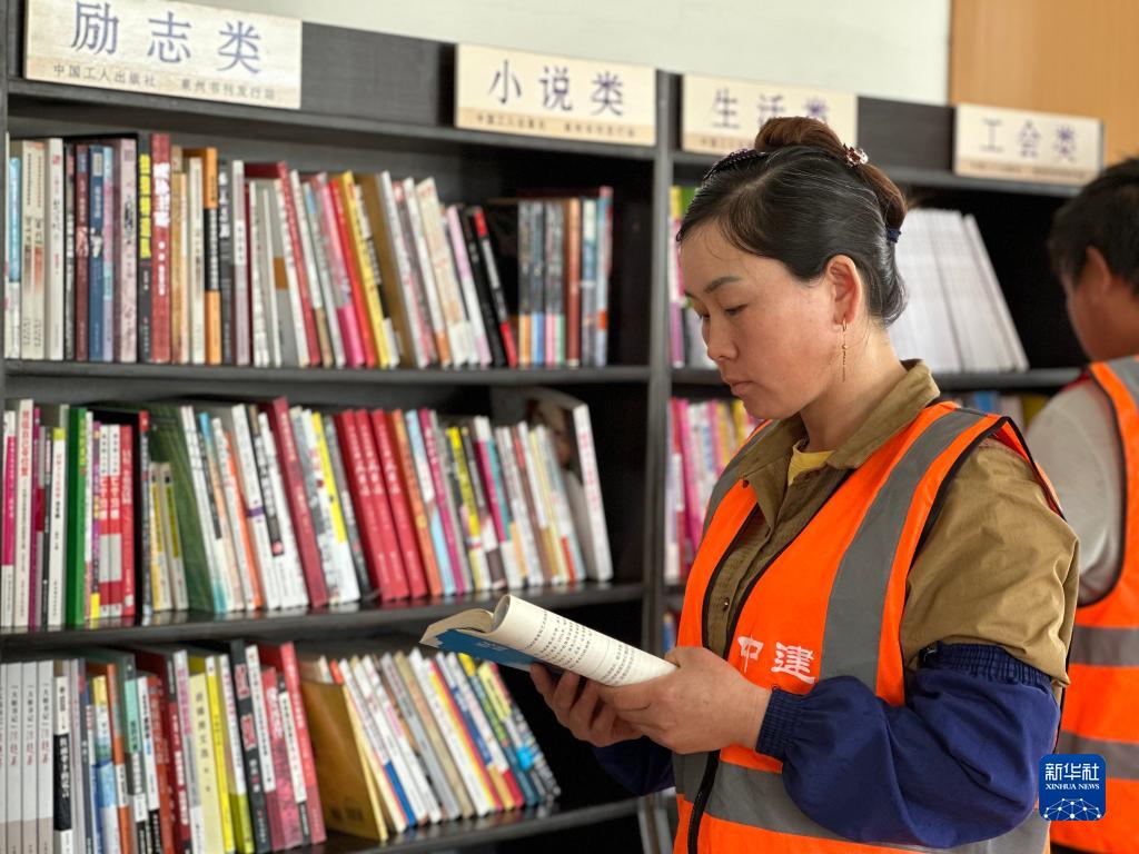 4月22日,在福建省廈門(mén)市一間為建筑工人打造的“工友圖書(shū)室“,一名工人在閱讀。