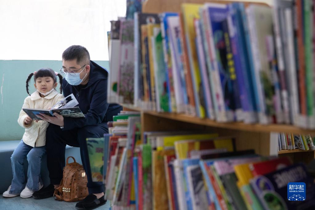 4月23日,在黑龍江省圖書(shū)館親子共讀閱覽室,孩子和家長(cháng)一起閱讀書(shū)籍。