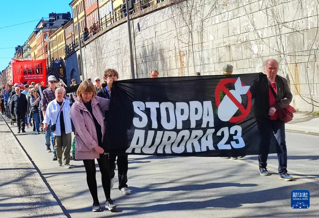 瑞典全國近20個(gè)城市22日舉行活動(dòng),抗議在瑞典舉行大規模國際軍事演習、反對瑞典加入北約。這次抗議活動(dòng)由瑞典和平與仲裁協(xié)會(huì )及反對北約、反對核武器等多個(gè)組織參與。在首都斯德哥爾摩有大約100人參加活動(dòng)。人們手持標語(yǔ)牌和橫幅,上面寫(xiě)著(zhù)“對北約說(shuō)不”“停止‘極光23’”等抗議字樣?!皹O光23”演習指的是目前在瑞典舉行、來(lái)自北約成員國2.6萬(wàn)人參與的軍事演習。