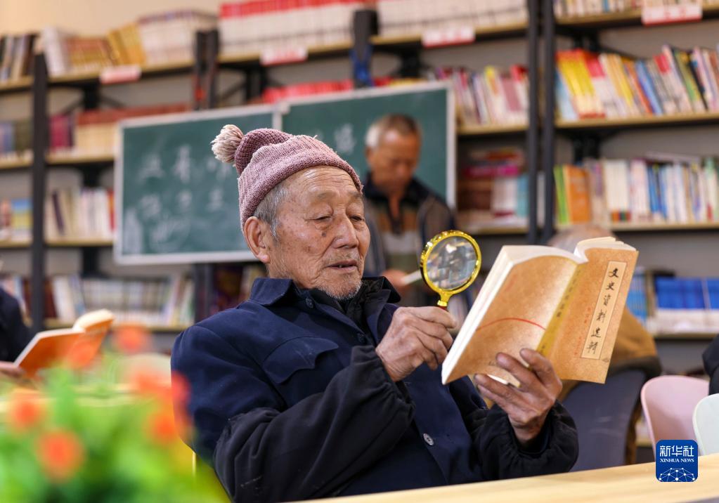 4月22日,村民在貴州省黔東南苗族侗族自治州岑鞏縣水尾鎮駕鰲村圖書(shū)室閱讀。