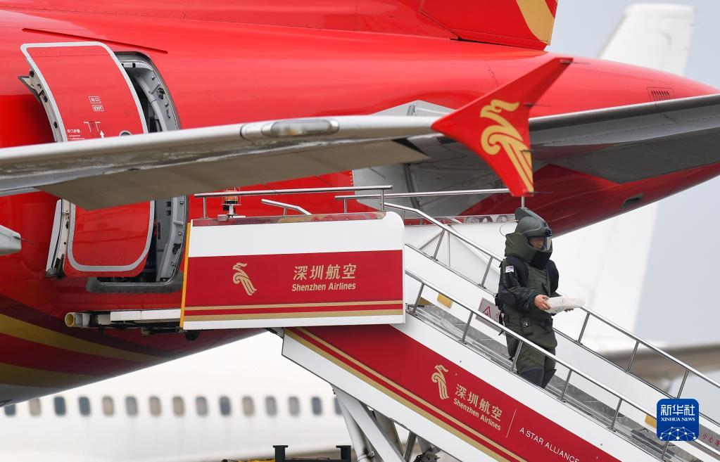 4月23日,在深圳機場(chǎng)舉行的演練中,警方對航空器進(jìn)行模擬搜排爆工作。
