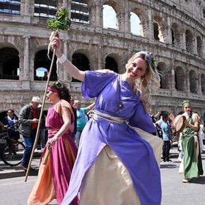 當日,人們穿戴古羅馬時(shí)期服飾,圍繞羅馬大競技場(chǎng)、威尼斯廣場(chǎng)和斗獸場(chǎng)等景點(diǎn)進(jìn)行建城2776年慶祝游行。相傳羅馬建城日為公元前753年4月21日。