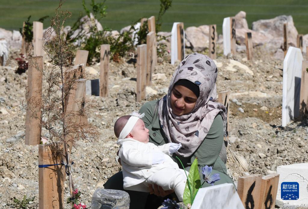 4月23日,人們在土耳其哈塔伊一處墓地悼念在地震中遇難的親人。新華社發(fā)(穆斯塔法·卡亞 攝)