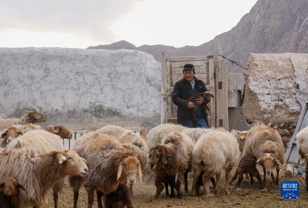 新疆克孜勒蘇柯?tīng)柨俗巫灾沃莅⒑掀婵h哈拉奇鄉阿合奇村,46歲的阿不都別克在自家羊圈里(4月10日攝)。
