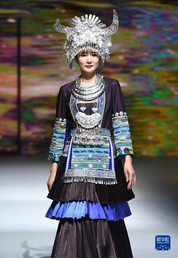 模特在廣西南寧市廣西文化藝術(shù)中心展示民族元素服飾(4月24日攝)。