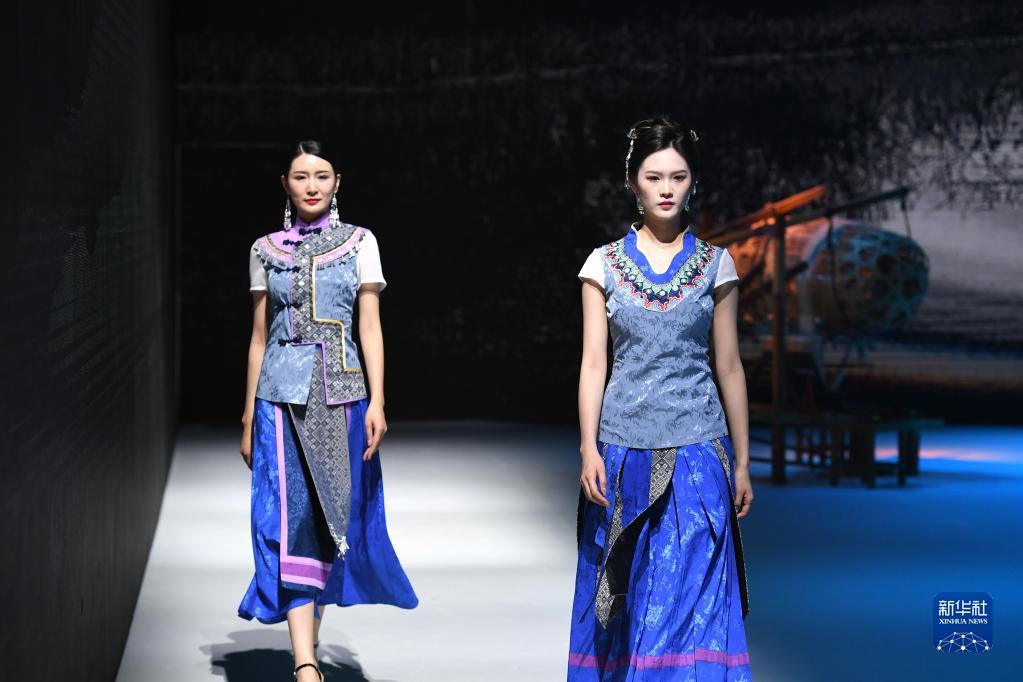 模特在廣西南寧市廣西文化藝術(shù)中心展示民族元素服飾(4月24日攝)。