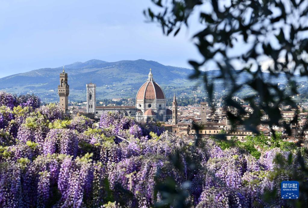 這是4月24日在意大利佛羅倫薩拍攝的紫藤花。