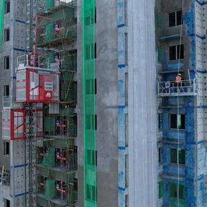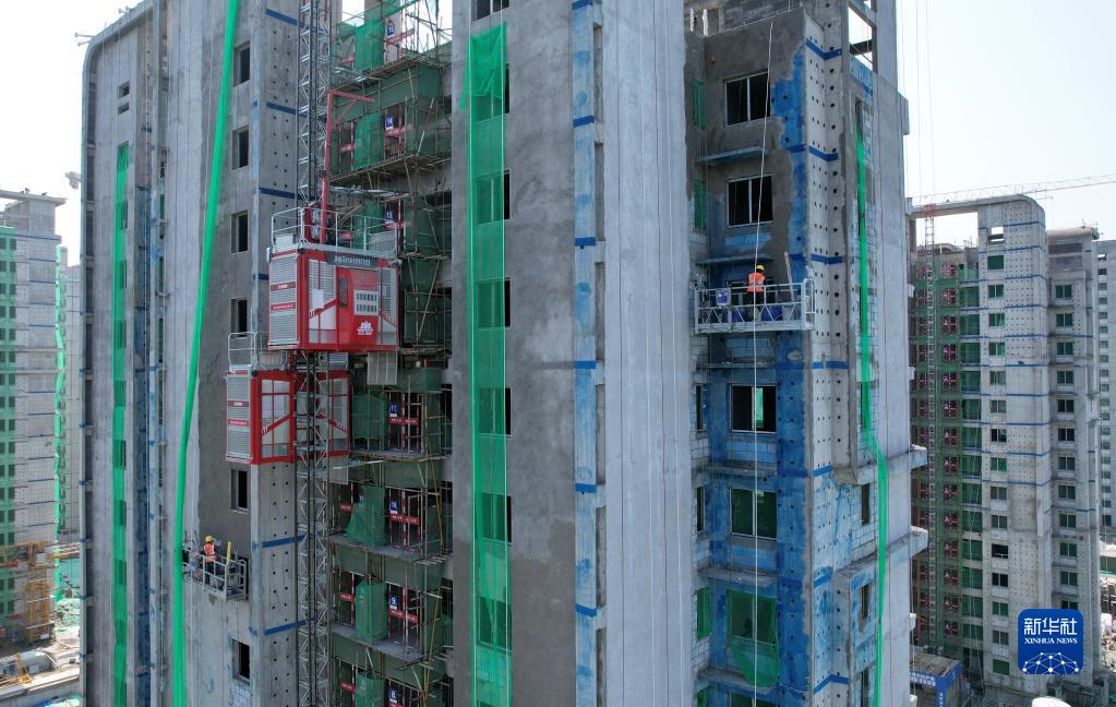 4月25日,中鐵二十局的工人在石家莊市高新技術(shù)產(chǎn)業(yè)開(kāi)發(fā)區集中安置區棚戶(hù)區改造項目建設工地施工(無(wú)人機照片)。