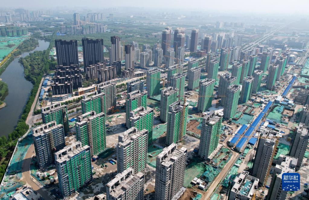 4月25日拍攝的中鐵二十局承建的石家莊市高新技術(shù)產(chǎn)業(yè)開(kāi)發(fā)區集中安置區棚戶(hù)區改造項目建設工地(無(wú)人機照片)。
