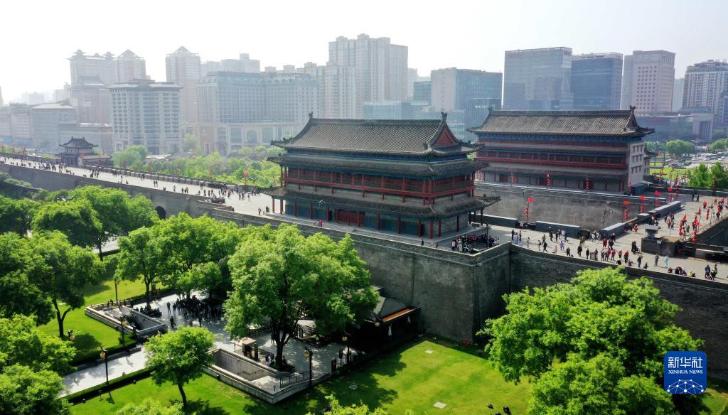 西安明城墻永寧門(mén)(4月25日攝,無(wú)人機照片)。