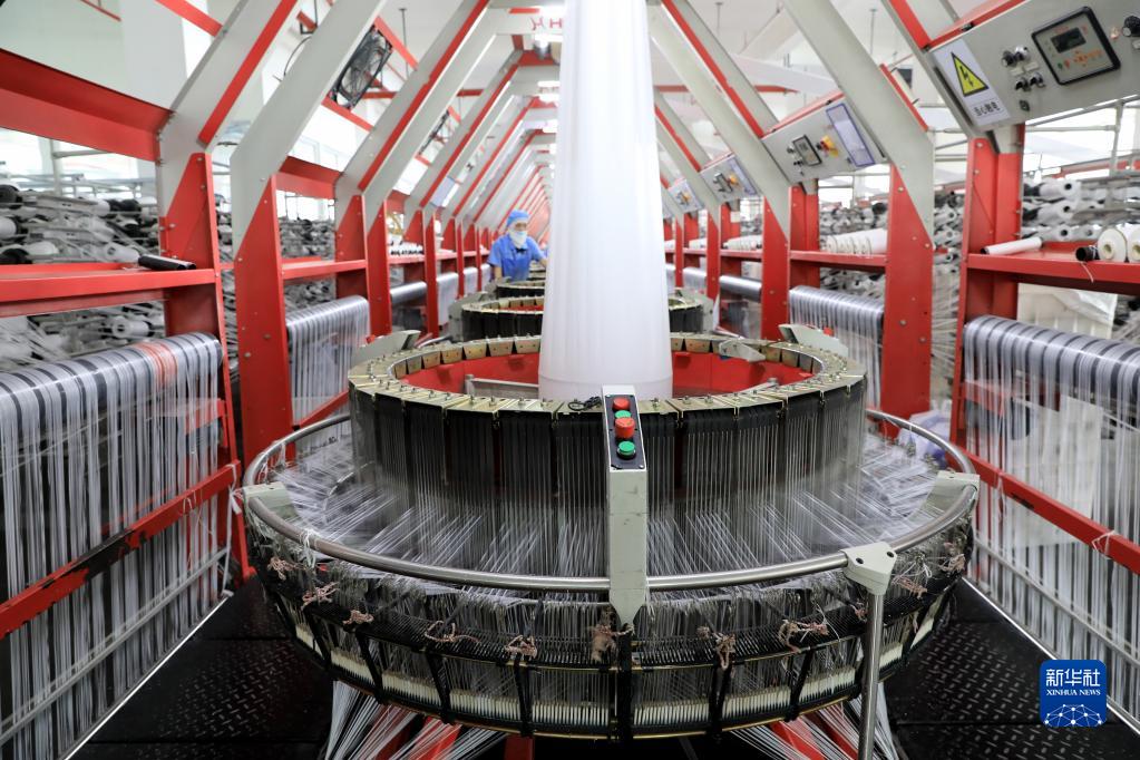 4月25日,在山東省臨沂市臨沭縣一塑編企業(yè)車(chē)間,工人加工塑編產(chǎn)品。