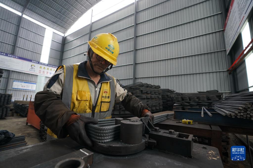 4月25日,中鐵二十局建設者在蘇臺高速公路七都至桃源段ST-QL5標預制梁場(chǎng)加工鋼筋。