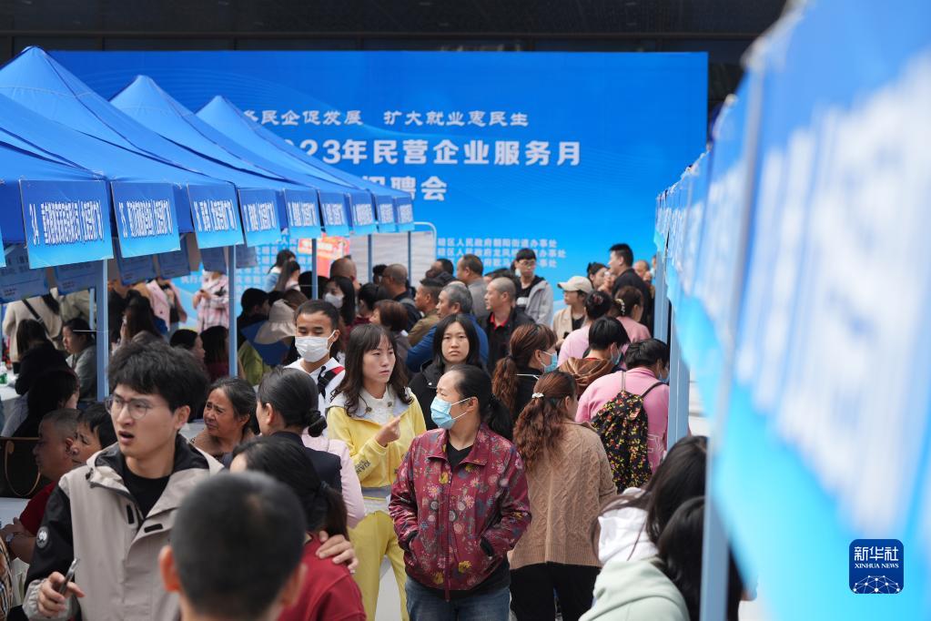 這是4月25日拍攝的重慶市北碚區吾悅廣場(chǎng)民營(yíng)企業(yè)服務(wù)月專(zhuān)場(chǎng)招聘會(huì )現場(chǎng)。