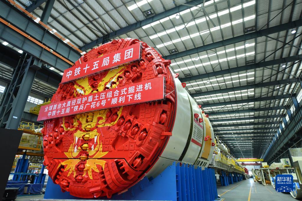 當日,大直徑雙護盾土壓組合式掘進(jìn)機“鐵兵廣花6號”在位于湖南省長(cháng)沙市的中國鐵建重工集團長(cháng)沙第二產(chǎn)業(yè)園下線(xiàn)?!拌F兵廣花6號”直徑8.9米,總長(cháng)131米,總重約1500噸,由中國鐵建重工集團和中鐵十五局集團聯(lián)合打造,下線(xiàn)后將被應用于廣州東至花都天貴城際項目京白區間施工。