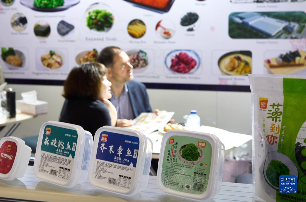 4月25日,在西班牙巴塞羅那舉行的全球水產(chǎn)品博覽會(huì )上,參展商和參觀(guān)者在中國展區洽談。