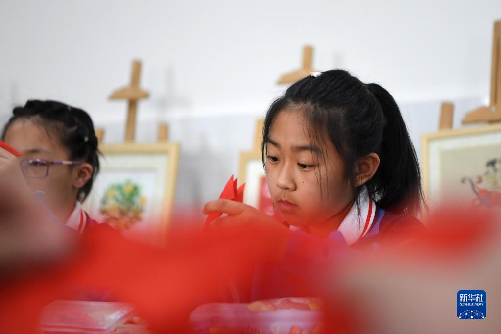 4月26日,在敦煌市西關(guān)小學(xué),剪紙社團的學(xué)生在課后服務(wù)時(shí)間進(jìn)行剪紙學(xué)習。