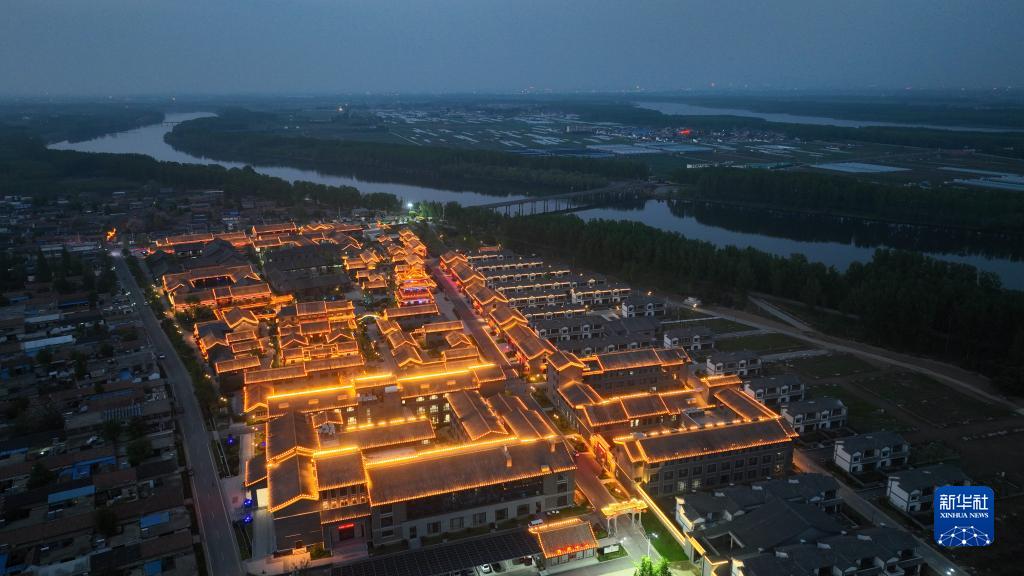 4月25日拍攝的山東省臨沂市臨沭縣曹莊鎮朱村夜景(無(wú)人機照片)。