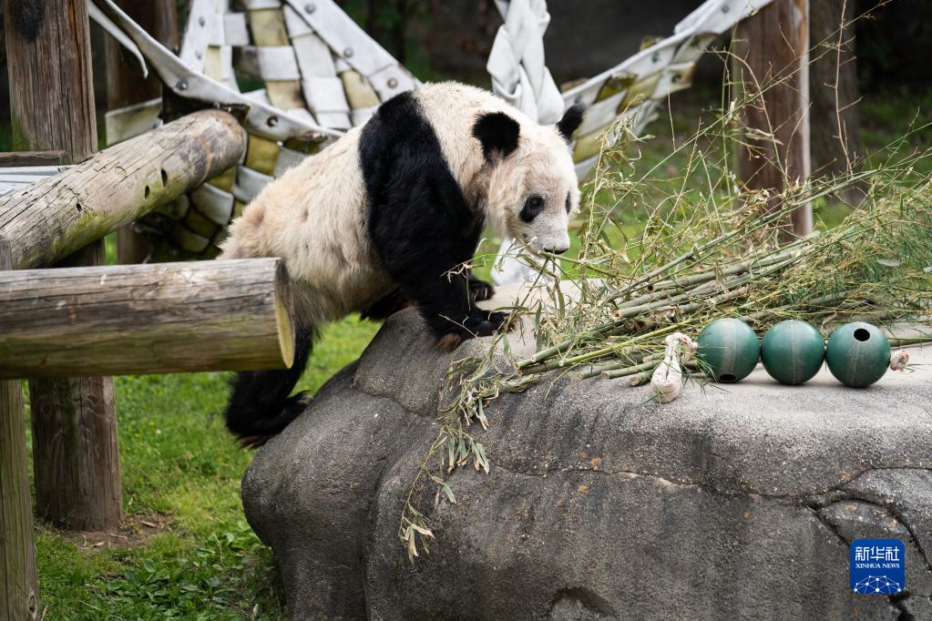 這是4月25日在美國田納西州孟菲斯動(dòng)物園拍攝的大熊貓“丫丫” 。