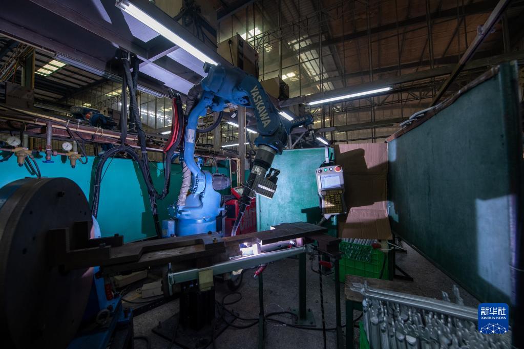 4月13日,在深圳市喜德盛自行車(chē)股份有限公司生產(chǎn)線(xiàn),機械臂焊接車(chē)架。
