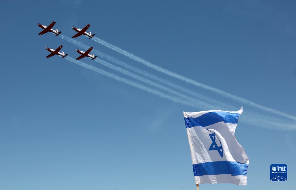 當日,以色列舉行飛行表演,慶祝建國75周年。