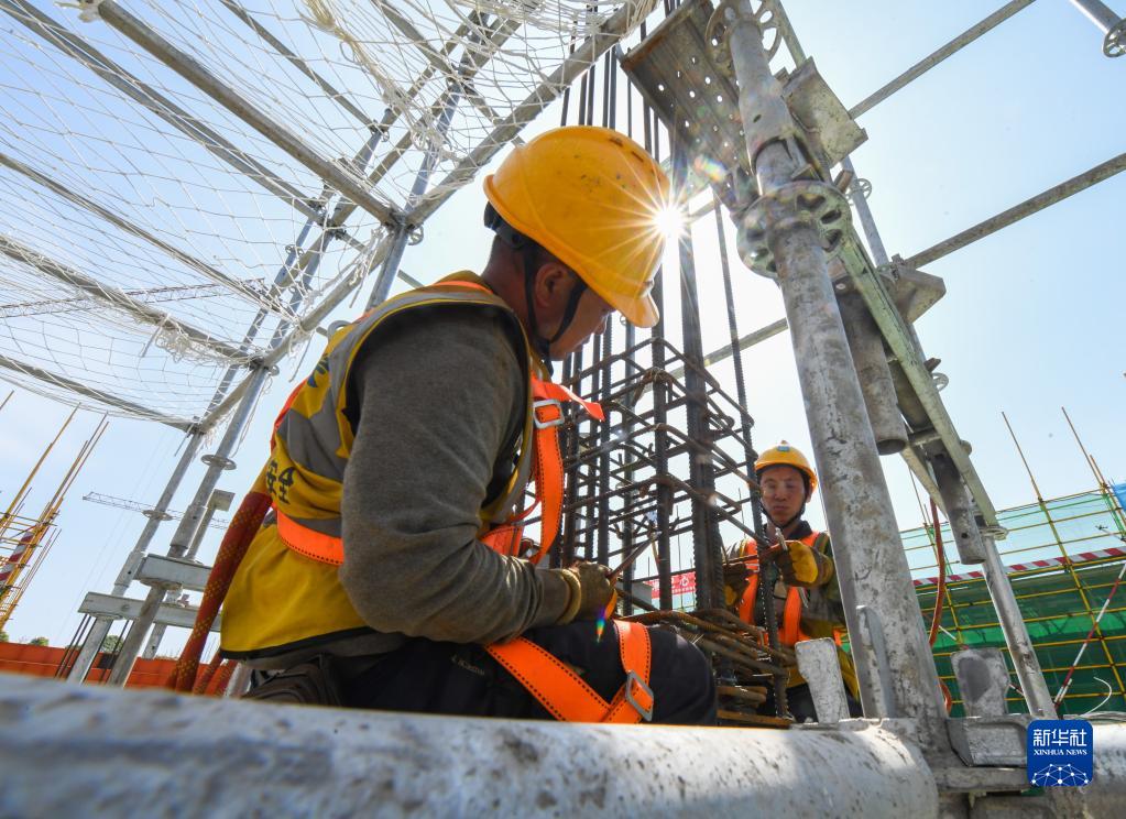 4月27日,在中建安裝集團有限公司位于四川遂寧市射洪市的廠(chǎng)房增產(chǎn)擴能項目建設現場(chǎng),參建者參加柱鋼筋綁扎比賽。