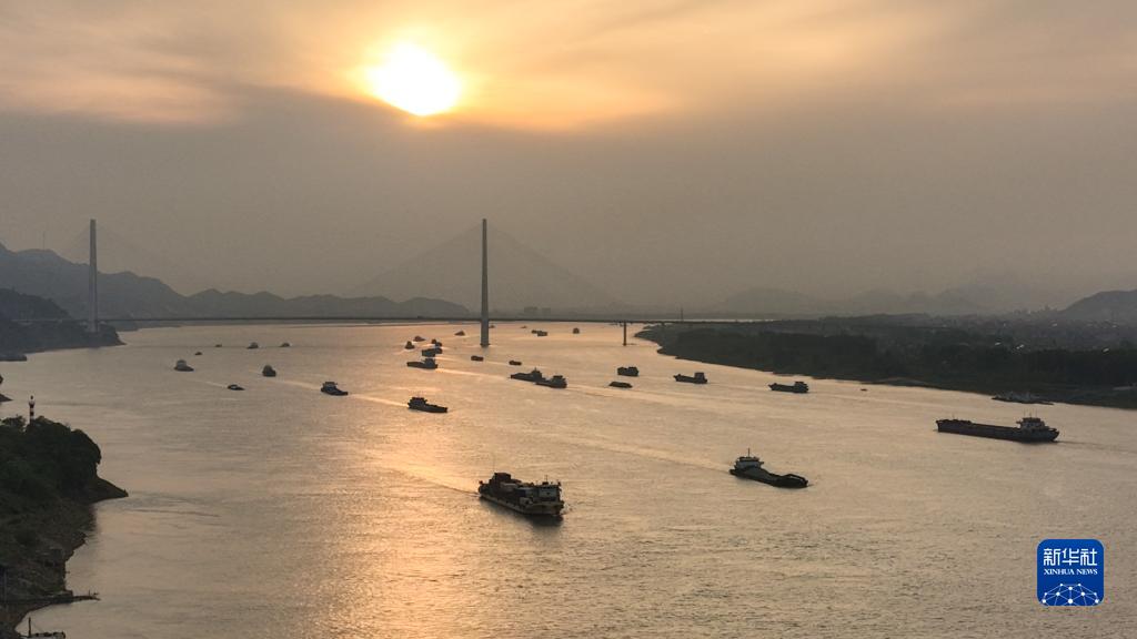 4月26日傍晚,在長(cháng)江江西九江瑞昌段的航道上,往來(lái)船只與夕陽(yáng)組成了一幅壯美畫(huà)面。