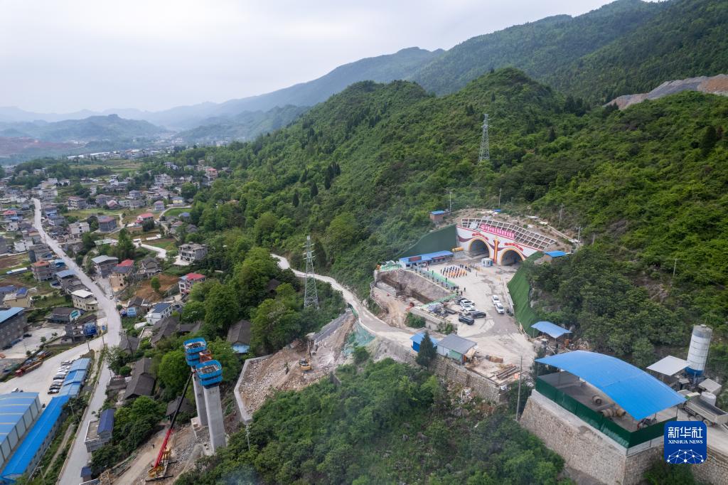 這是4月27日拍攝的湖南桑龍高速賀龍隧道及周邊環(huán)境(無(wú)人機照片)。