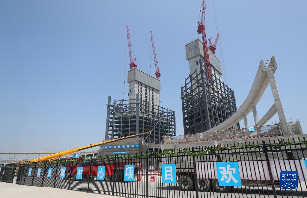 4月27日拍攝的臨港西島中銀金融中心項目建設工地。