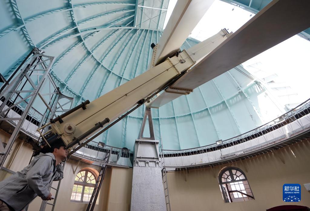 4月27日,工作人員在調節40厘米口徑大雙筒折射望遠鏡的觀(guān)測角度。