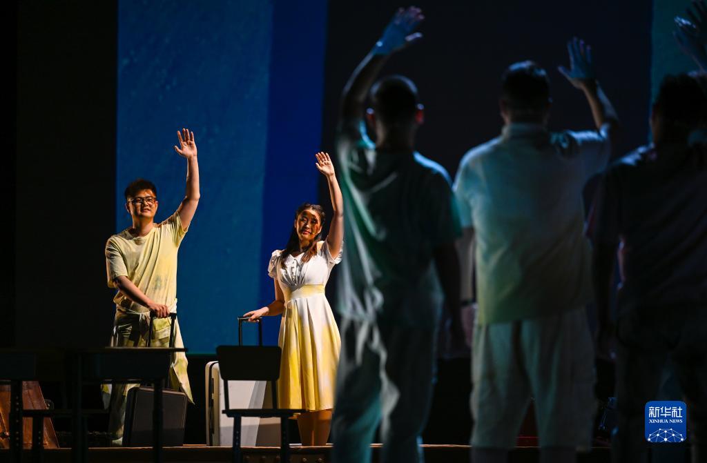 4月27日,演員在話(huà)劇《天邊的草原》中表演。