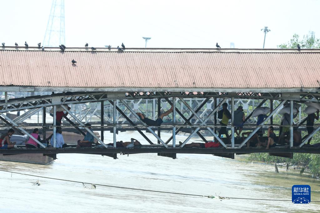 4月27日,人們在緬甸仰光一處碼頭陰涼處休息。