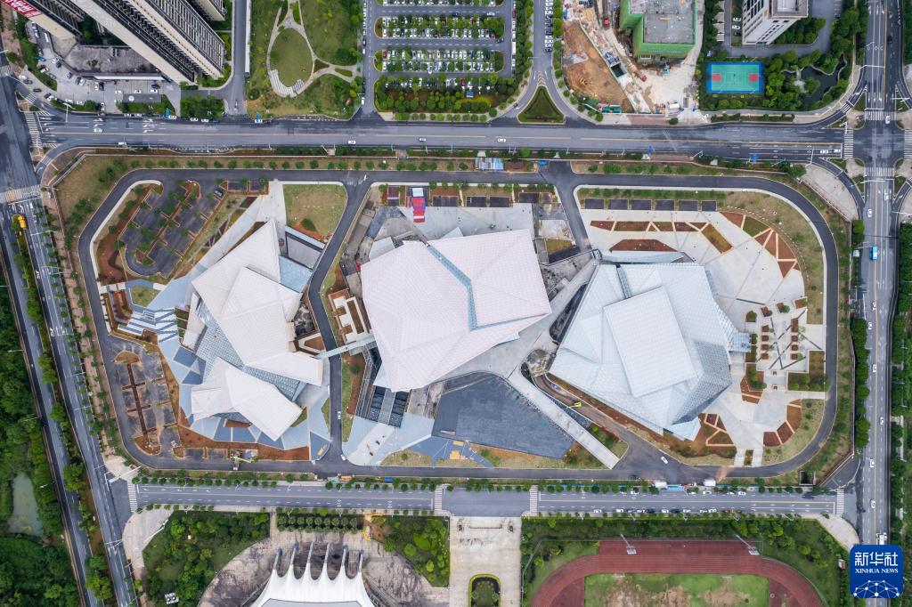這是4月28日拍攝的建設中的郴州市文體中心(無(wú)人機照片)。