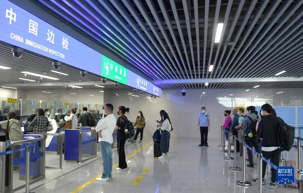 4月28日,旅客在廣州琶洲港澳客運口岸辦理邊檢手續,準備前往香港國際機場(chǎng)。