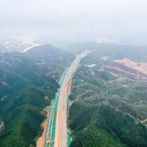 4月28日拍攝的黃茅??绾Mǖ澜T(mén)臺山段赤溪東互通至獅山隧道主線(xiàn)路基已經(jīng)完成施工(無(wú)人機照片)。