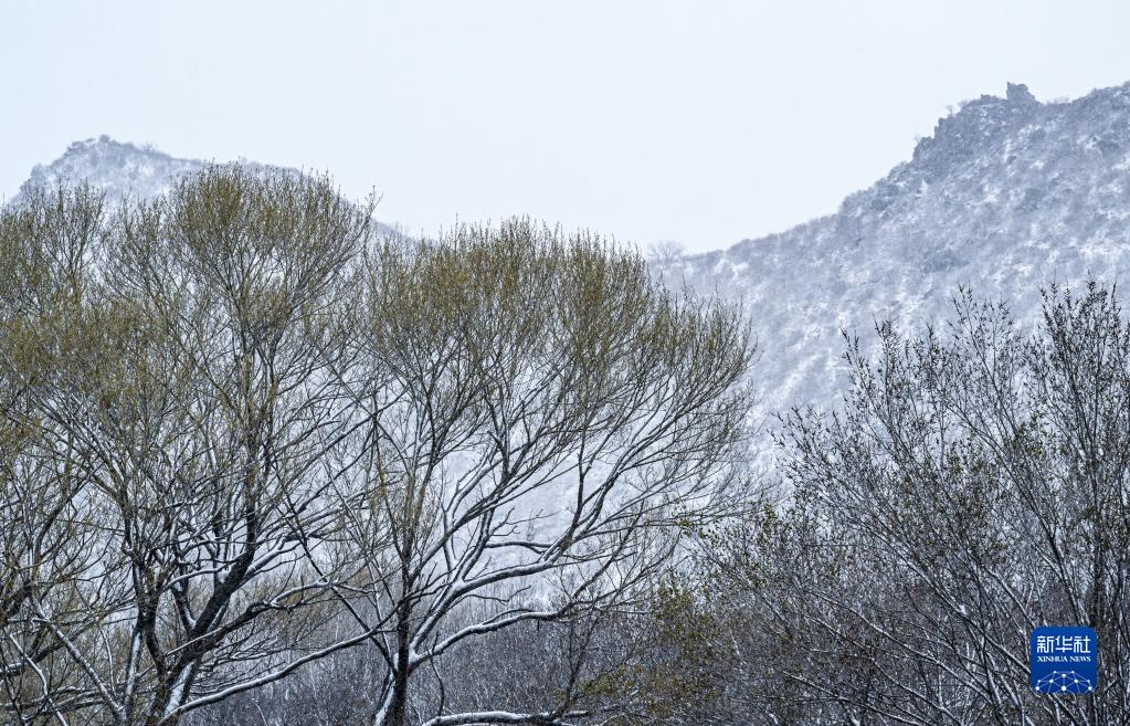 4月28日拍攝的內蒙古自治區呼和浩特市北郊的大青山自然保護區雪景。