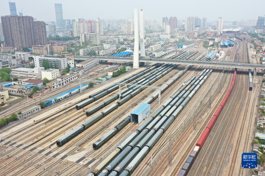 4月28日拍攝的中國鐵路上海局集團有限公司徐州站客車(chē)整備場(chǎng)(無(wú)人機照片)。
